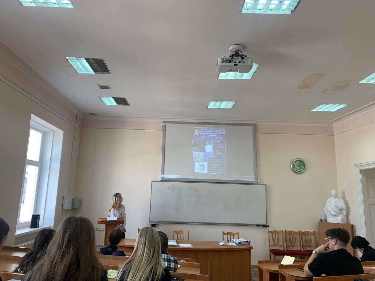 І знову, як і минулого року, напередодні шевченківських днів Львівське відділення МАН України згуртовує творчу і талановиту молодь, ніби доводячи великому Кобзареві, що ми справно виконуємо його заповіти: старанно навчаємось, щоб нарешті вибудувати ту справжню Україну, про яку так мріяв Шевченко. 7-9 березня відбувається ІІ етап конкурсу-захисту наукових робіт учнів. Представляти наукову честь нашого ліцею з німецької філології випала нагода трьом талановитим старшокласницям: Володимирі Бурбель (10-Б), Софії Медведик та Анні Федак (11-Б). З усіма трьома складовими захисту, а саме: написання роботи, підготовка і захист постеру, захист презентації, дівчатка справилися на відмінно. Як результат, Анна Федак - І місце, Софія Медведик -ІІ місце. Достойно була оцінена робота Володимири, яка обовʼязково наступного року доведе справу до кінця!