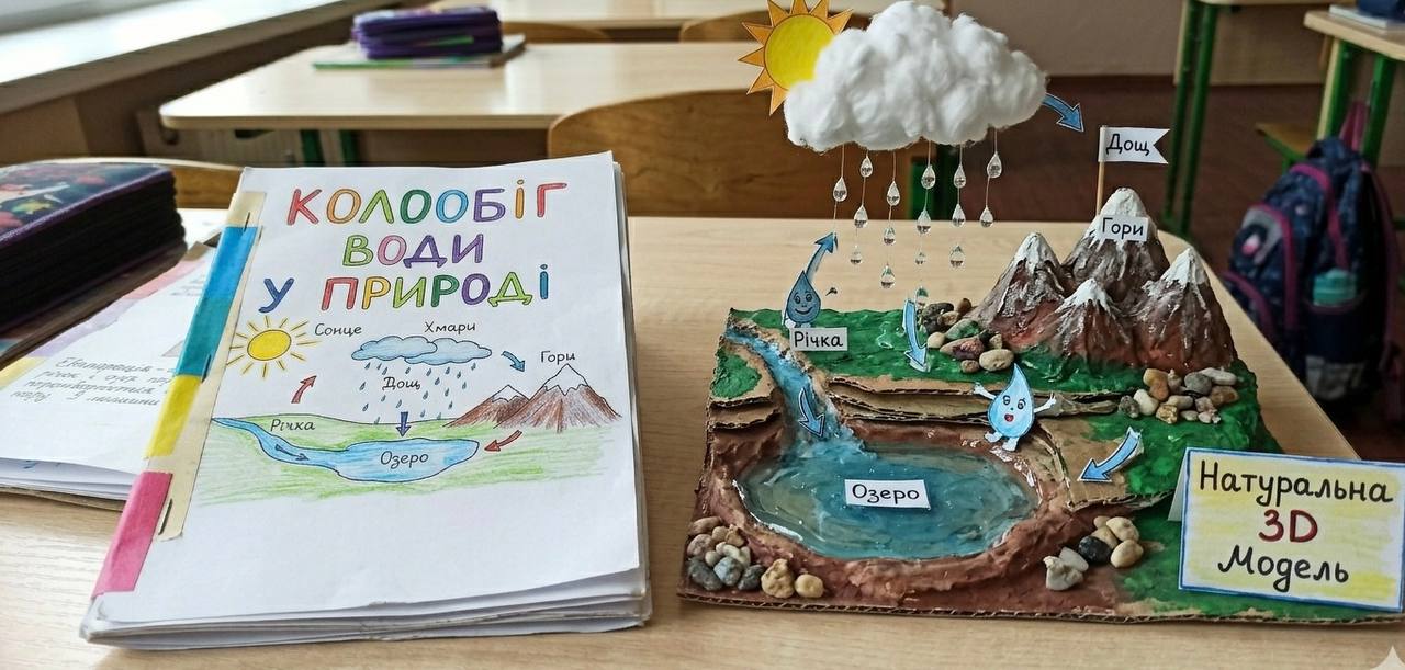 Учні 6-х класів досліджували кругообіг води в природі та продемонстрували свої знання на практиці, створивши креативні 3D-моделі цього процесу. Роботи вирізнялися оригінальністю, старанністю та глибоким розумінням теми.