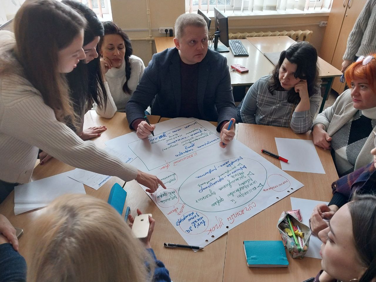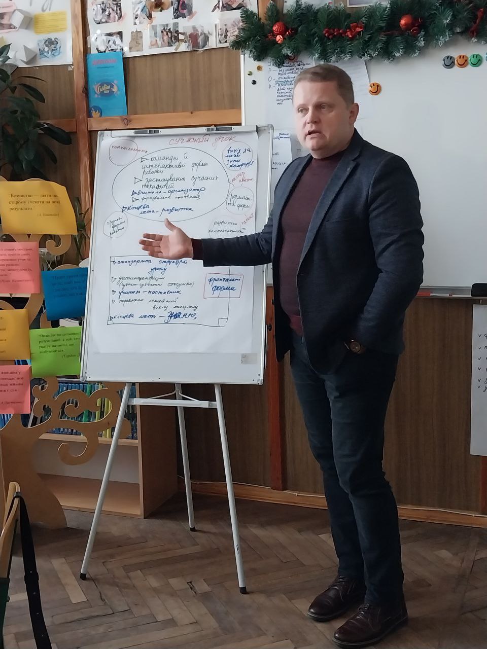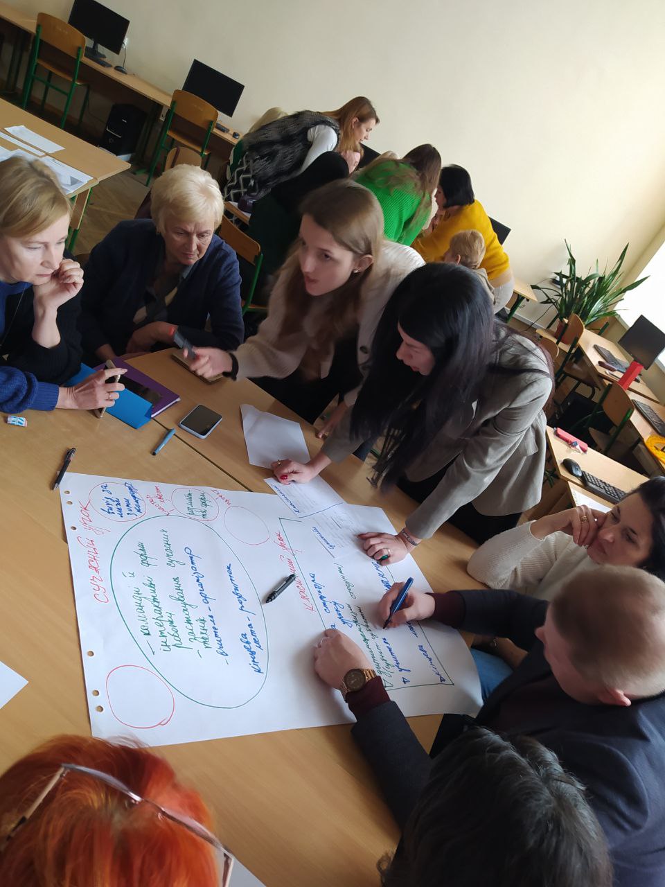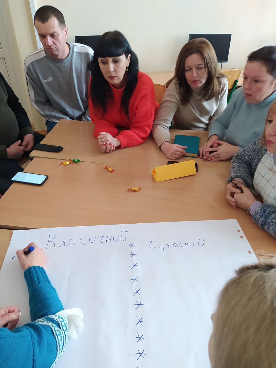 25 січня в ліцеї №2 відбулося засідання педагогічної ради на тему «Сучасний урок – основа ефективного та якісного навчання». Вибір цієї теми не є випадковим. Змінюється мета та зміст освіти, з’являються нові засоби та технології навчання, але з уроку починається освітній процес, уроком він і закінчується. Саме на уроці зустрічаються головні учасники цього процесу: учитель та учень. І що би не говорили про такі потрібні та правильні ідеї, як самоосвіта, дистанційне навчання, він – учитель – завжди буде головною дійовою особою на будь-якому уроці. Разом із тим ми всі розуміємо, що виникає потреба подивитися по-новому на сучасний урок, його структуру, форми, технології проведення. І саме тому педагоги мали можливість глянути на урок крізь призму модернізації освіти. У груповій роботі вчителі робили порівняльну характеристику традиційного та сучасного інтерактивного уроку, визначали риси сучасного уроку, впорядковували його етапи та визначали відсоток часу, що припадає на кожний етап, розставляли критерії ефективності уроку в порядку значущості від найважливішого до менш важливого.