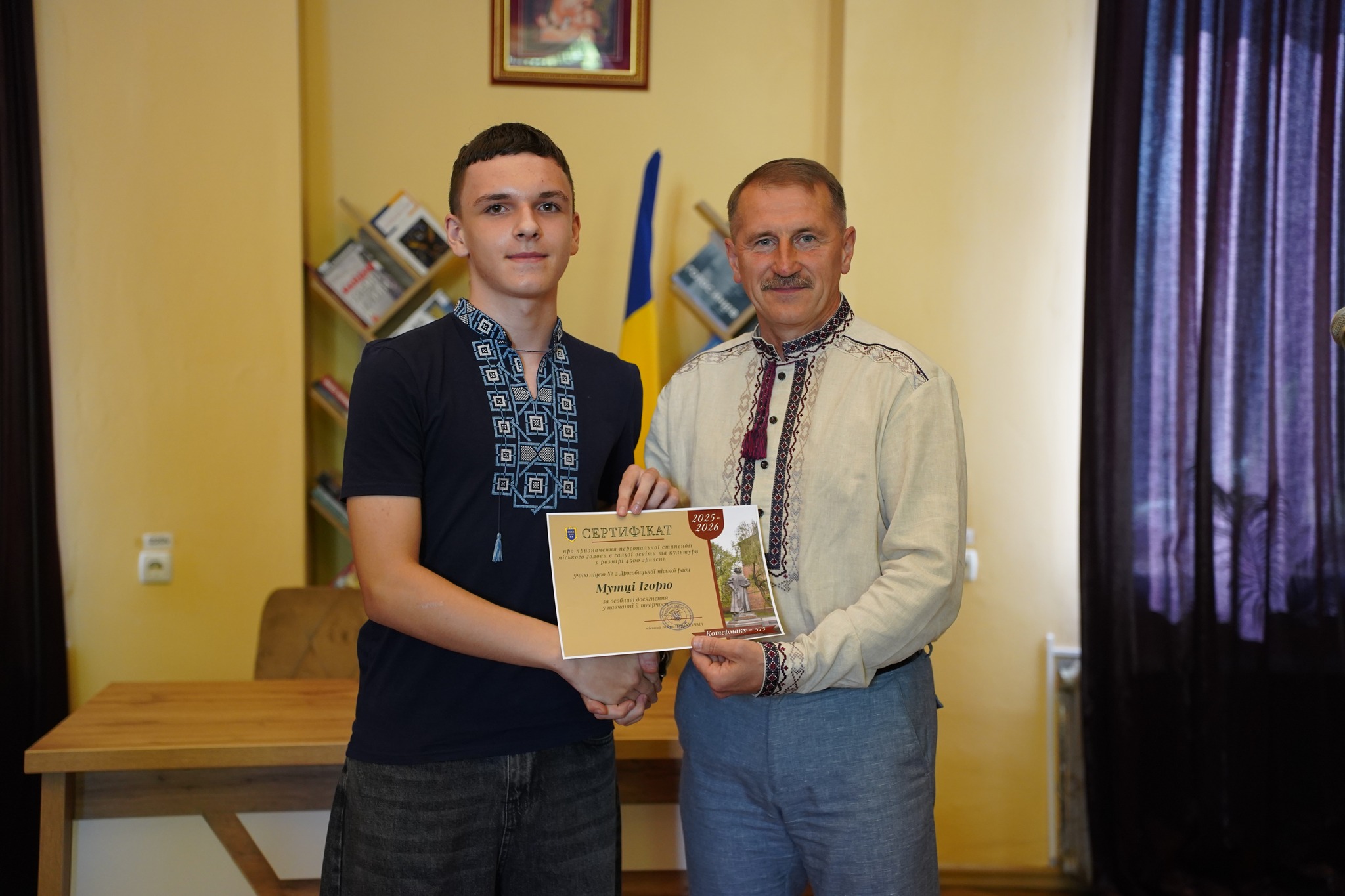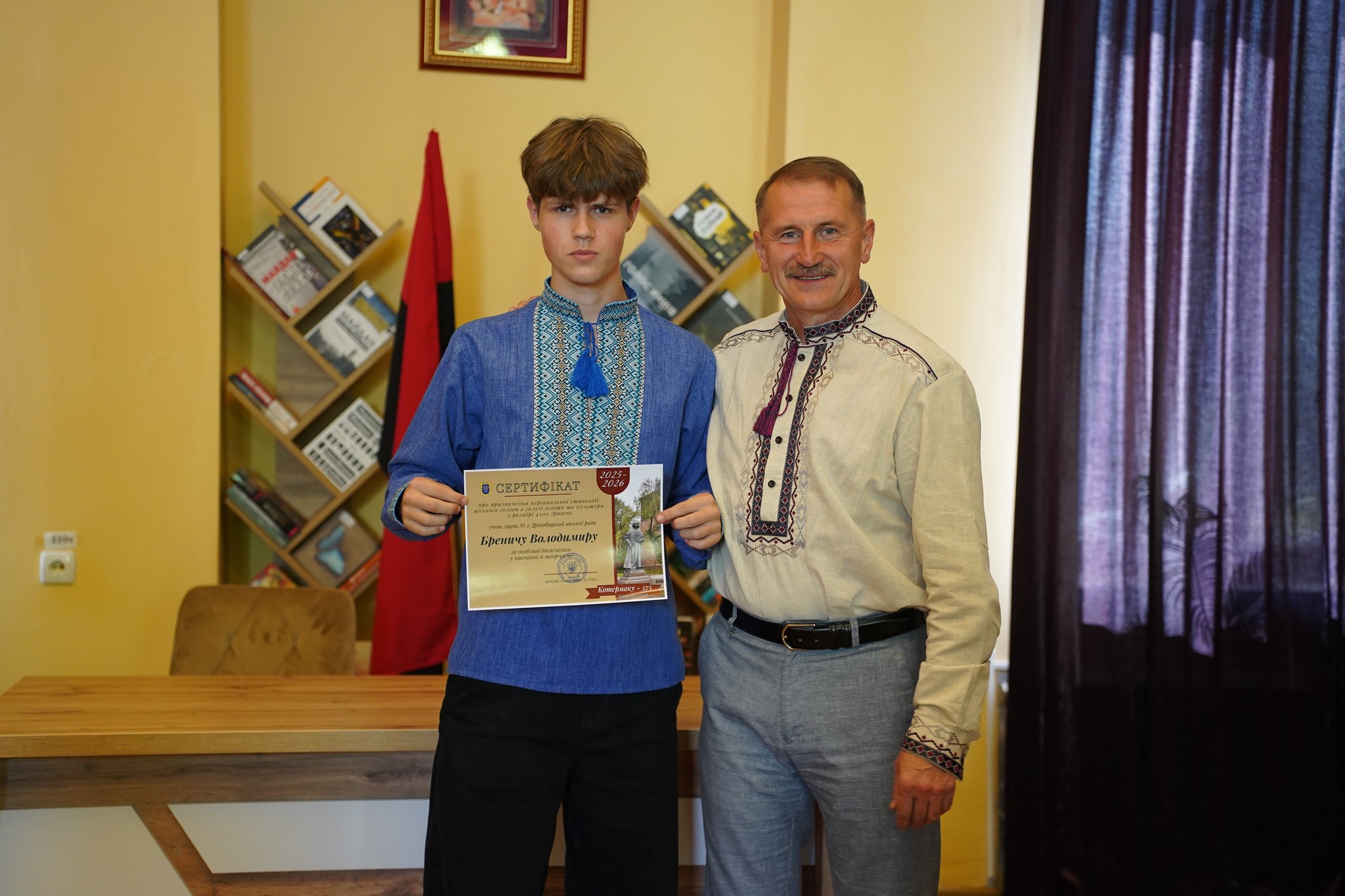 У День міста в Дрогобичі провели урочисту церемонію вручення літературно-мистецької премії ім. Юрія Дрогобича та нагородження кращих учнів – стипендіатів міського голови. Серед стипендіатів і четверо наших ліцеїстів: Володимир Бренич, Вікторія Берегуляк, Валерія Хащівська, Ігор Мутка.